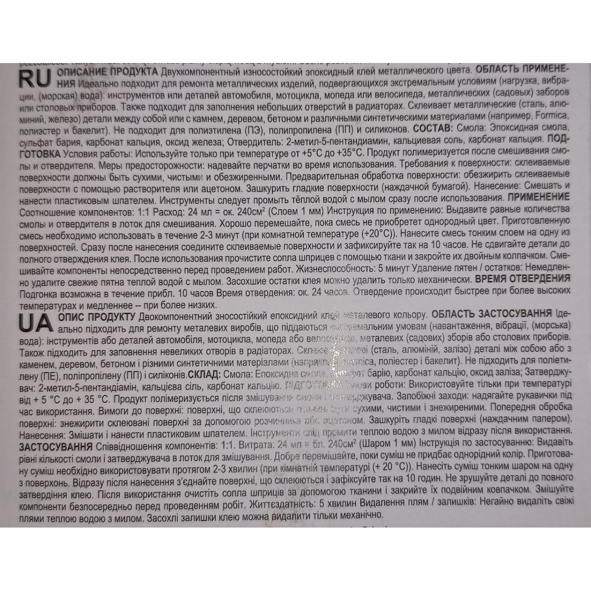 Клей епоксидний (двокомпонентний) металевого кольору. GREY WINSO adhesive