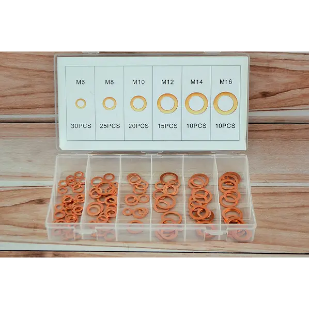 Набір мідних шайб 110 шт. розміри: М6, М8, М10, М12, М14 та М16