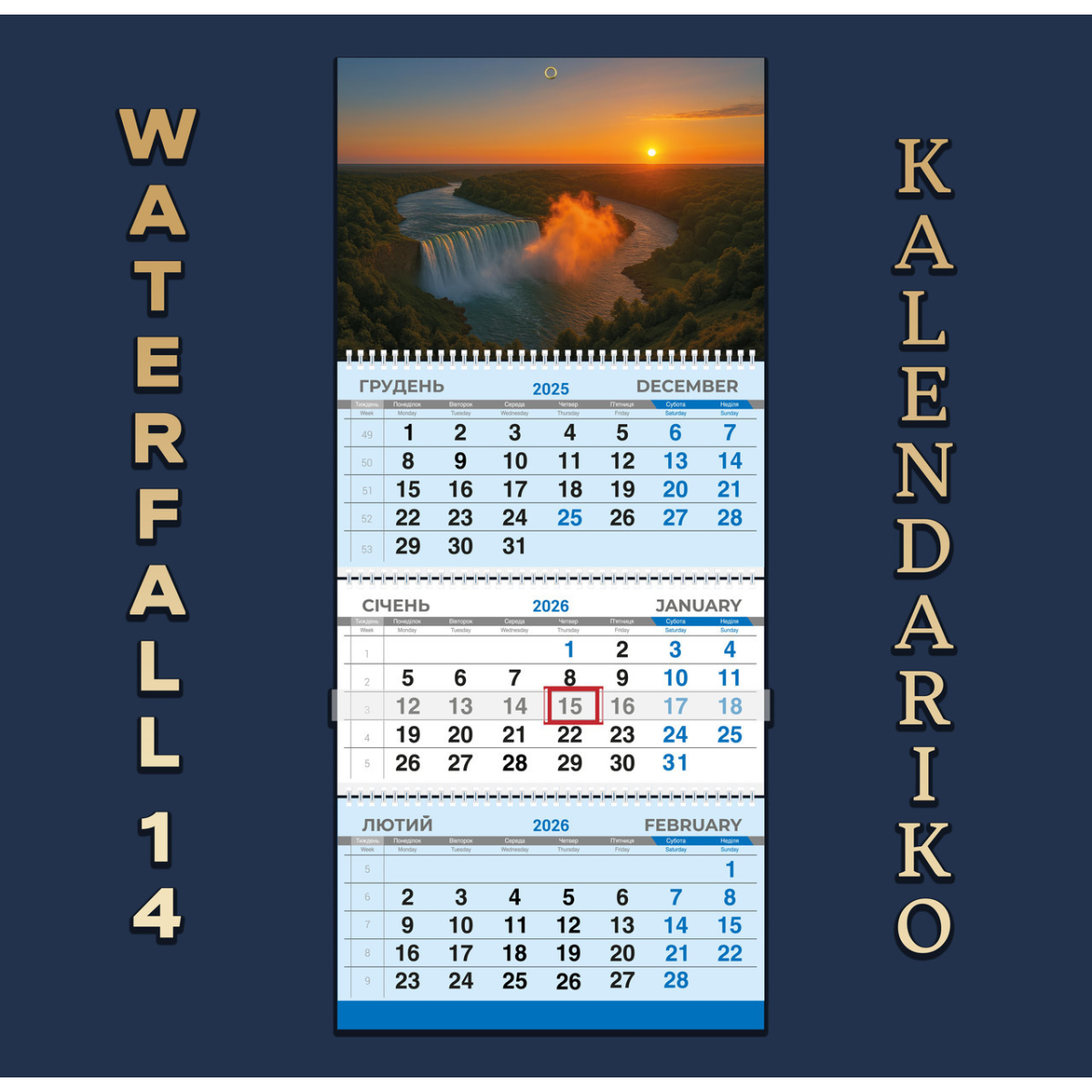 Календар квартальний на 2026 рік Водоспад-14