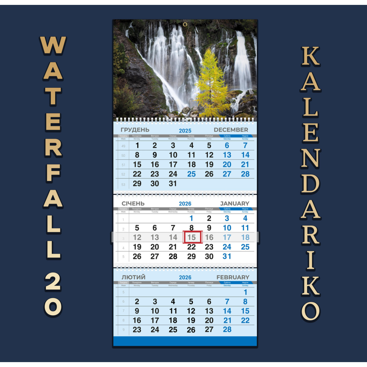 Календар квартальний на 2026 рік Водоспад-20