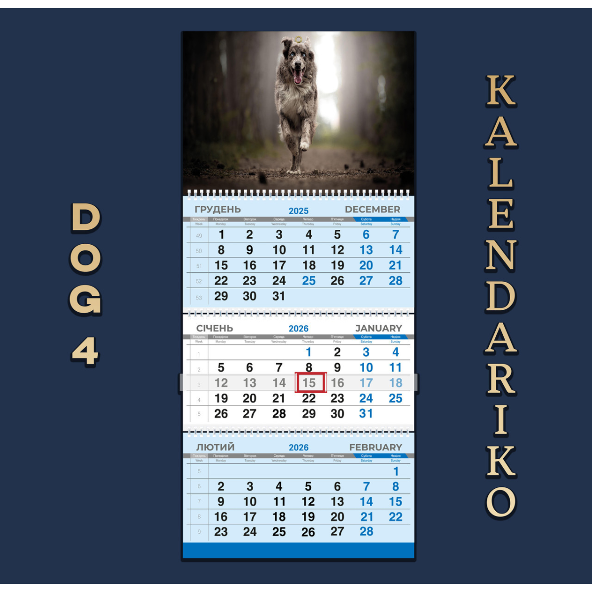 Календар квартальний на 2026 рік Собаки-04