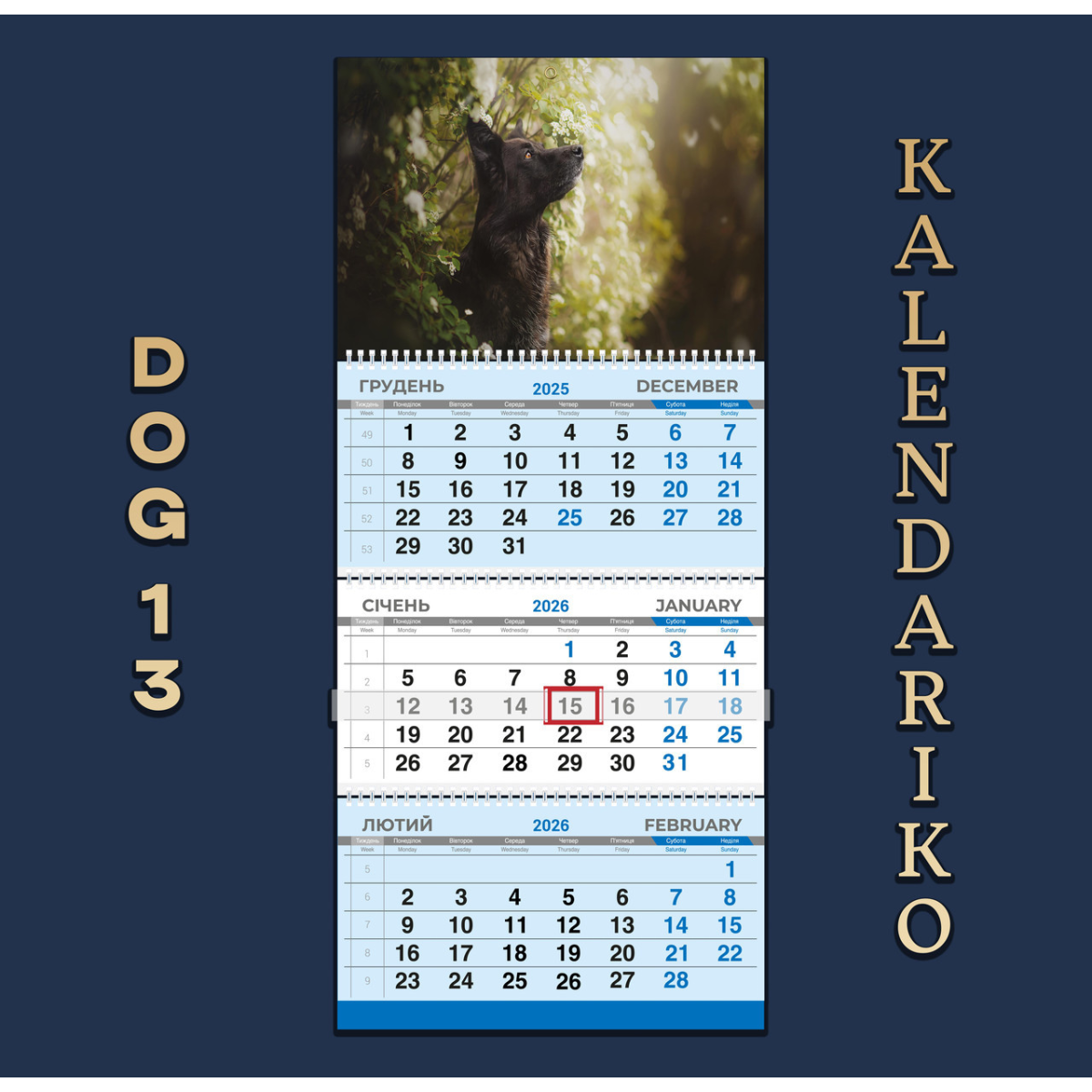 Календар квартальний на 2026 рік Собаки-13