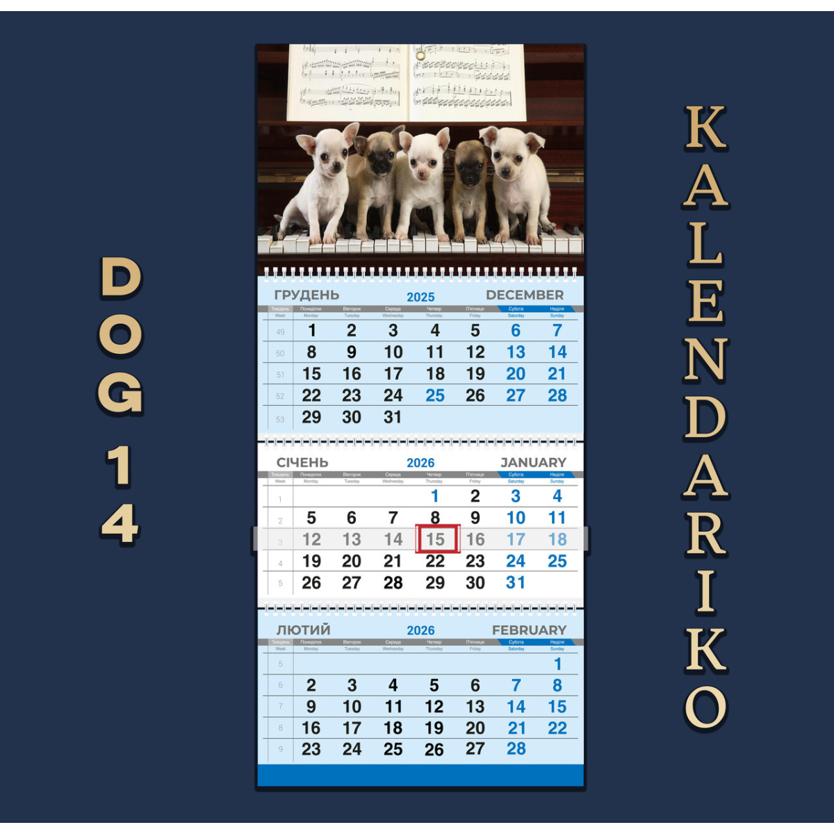 Календар квартальний на 2026 рік Собаки-14