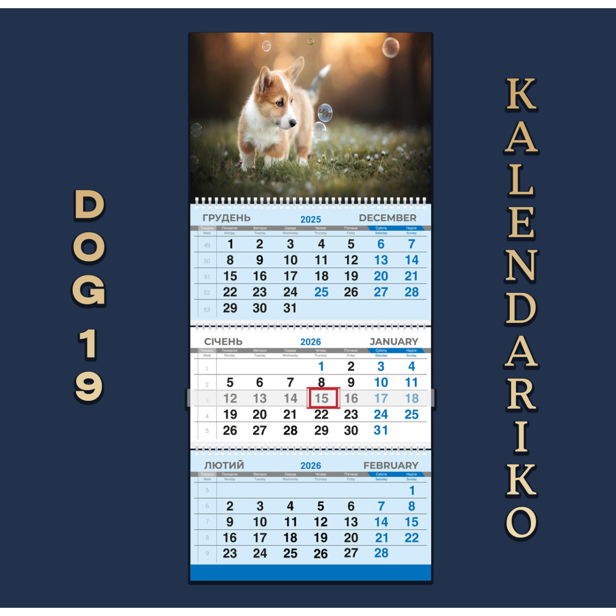 Календар квартальний на 2026 рік Собаки-19