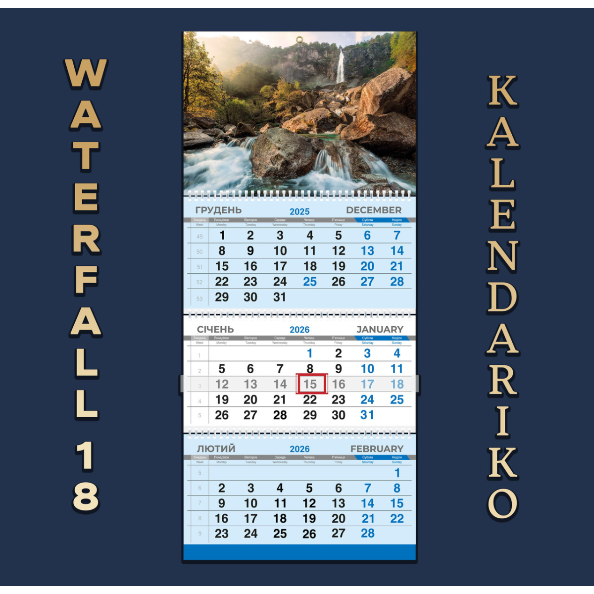Календар квартальний на 2026 рік Водоспад-18