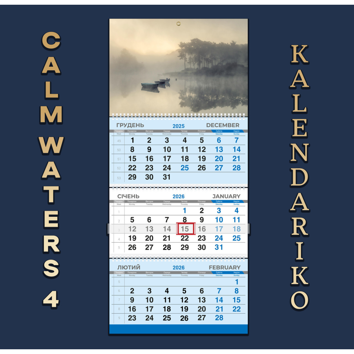 Квартальний календар “Тихі води“ на 2026 рік — це гармонія, спокій та умиротворення. Календар з витонченими зображеннями гладкої водної поверхні та спокійних пейзажів принесе у ваш дім або офіс атмосферу тиші та затишку. Він стане не лише зручним інструментом для планування, а й джерелом внутрішньої рівноваги.